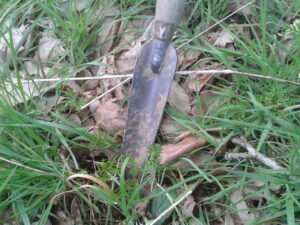 - Le couteau à racine, un outil qui me sert à beaucoup de choses, très utile pour déterrer la noisette.