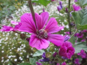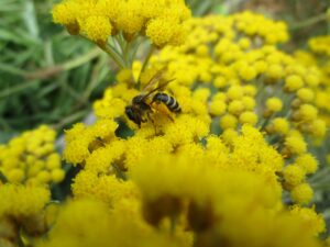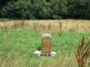 Il y a un essaim sauvage, en bas à la rivière mais nous avions envie d’avoir nos ruches. Pour avoir du miel et de la cire mais aussi pour le plaisir d’avoir ses abeilles. Nous devions avoir deux ruches mais la ruche Kényane n’a pas pu être essaimée. Nous avons quand même la Warré ! Ce sont des abeilles noires, que nous avons eu grâce à l’association « Les abeilles vertes du Trégor » (un grand merci à François !!). Elles sont bien arrivées au champ et s’éclatent dans les fleurs. C’est un vrai plaisir de les observer et de les avoir comme compagnes de cueillette !